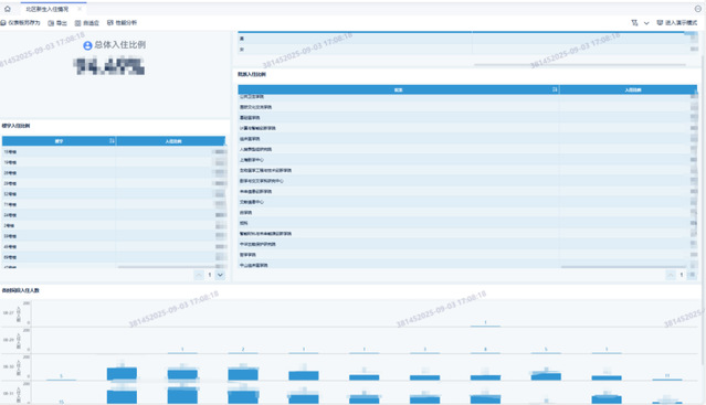 今年新生刷一卡通后,系统调用数据中台接口并反馈宿舍信息,物业工作人员根据反馈信息找到对应的宿舍钥匙。根据后台数据统计分析,将往年平均每1分钟办理1人次的现场办理速度提升至平均每30秒办理1人次,有效减少了新生的排队时间,提升现场工作效率,得到了相关部门和新生的一致好评。另外,园区办公室可在后台实时查看北区新生入住情况,按园区、院系、楼宇、性别多个维护统计入住比例,以及分时段办理人数统计。